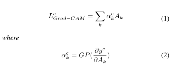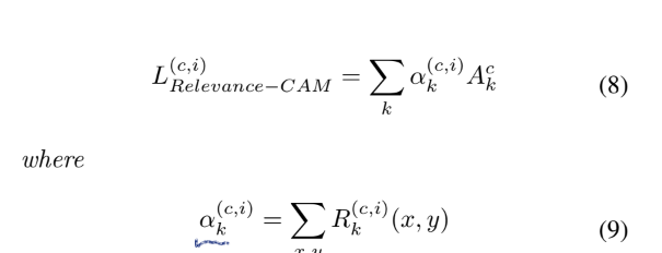 alpha는 relevance의 합으로 k-th channel activation map to the target class output score의 importance/contribution.