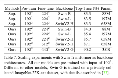 Swim Transformer의 경우 서로 다른 해상도 단계의 등가 패치 크기인 4x4에서 32x32까지 고려하고, 기본적으로 마지막 단계의 패치 크기인 32x32 채택