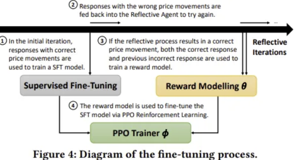self-reflective agent를 이용하여 주어진 요약된 사실들을 바탕으로 올바른 주식 예측 수행, 예측 근거 설명 과정 반복 학습