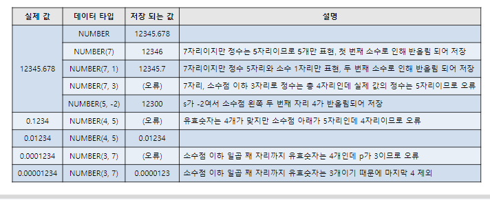 NUMBER 타입 컬럼에 데이터 삽입 시