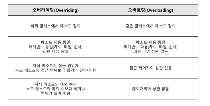 부모 클래스의 메소드와 자식 클래스의 메소드 비교