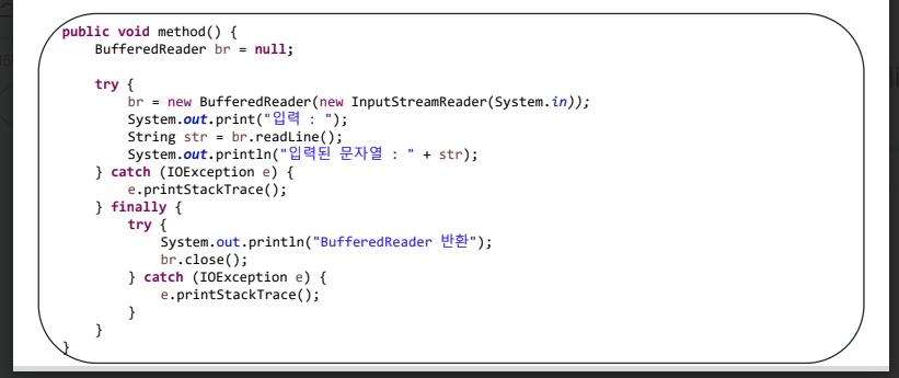 주로 java.io나java.sql패키지의 메소드 처리 시 이용