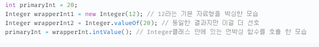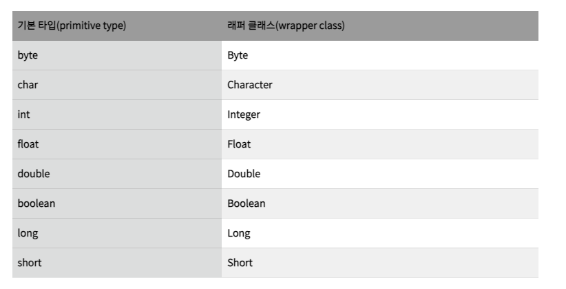 기본 자료타입(primitive type)을 객체로 다루기 위해서 사용하는 클래스들을 래퍼 클래스(wrapper class)라고 한다.