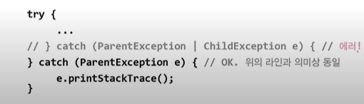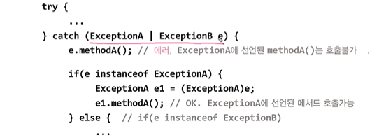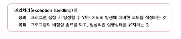 -> (2)은 예외처리할 때, 항상 써주는 것이 필수!! ( 예외발생 당시의 호출스텍(Call Stack)에 있었던 메서드의 정보와 예외 메시지를 화면에 출력