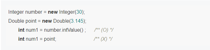 -> Wrapper 클래스 객체에서 메소드 사용은 형변환이 가능한 메소드만 사용가능.