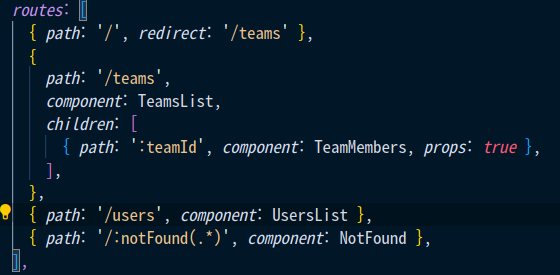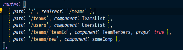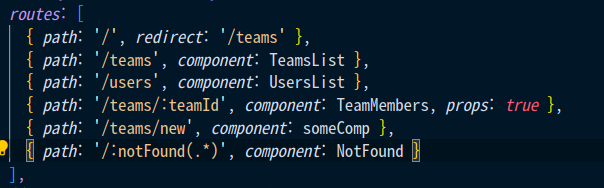 routes 프로퍼티에는 route 객체타입을 배열로 관리하게 된다.