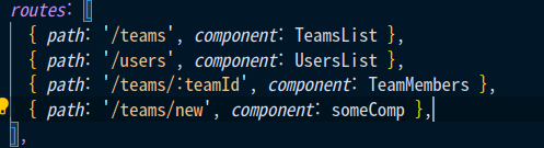 이때 중복되는 경로인 '/teams' 를 제외하고 동적으로 할당받을 경로 부분만 작성하면 된다.