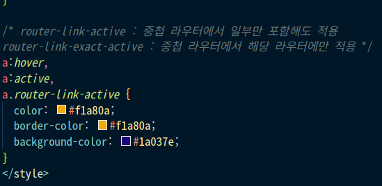 router-link 의 자체 클래스인 router-link-active, router-link-exact-active 클래스를 활용해 사용자에게 더 나은 시각적 정보 제공이 가능하다.