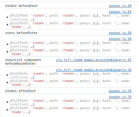 위 beforeEach(), beforeEnter() 가 router 파일 내에서 선언되었다면,