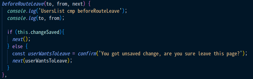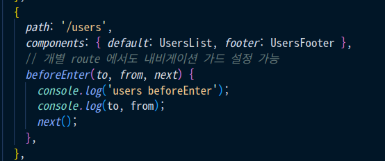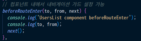 예시로 UsersList.vue 컴포넌트에 설정된 내비게이션 가드