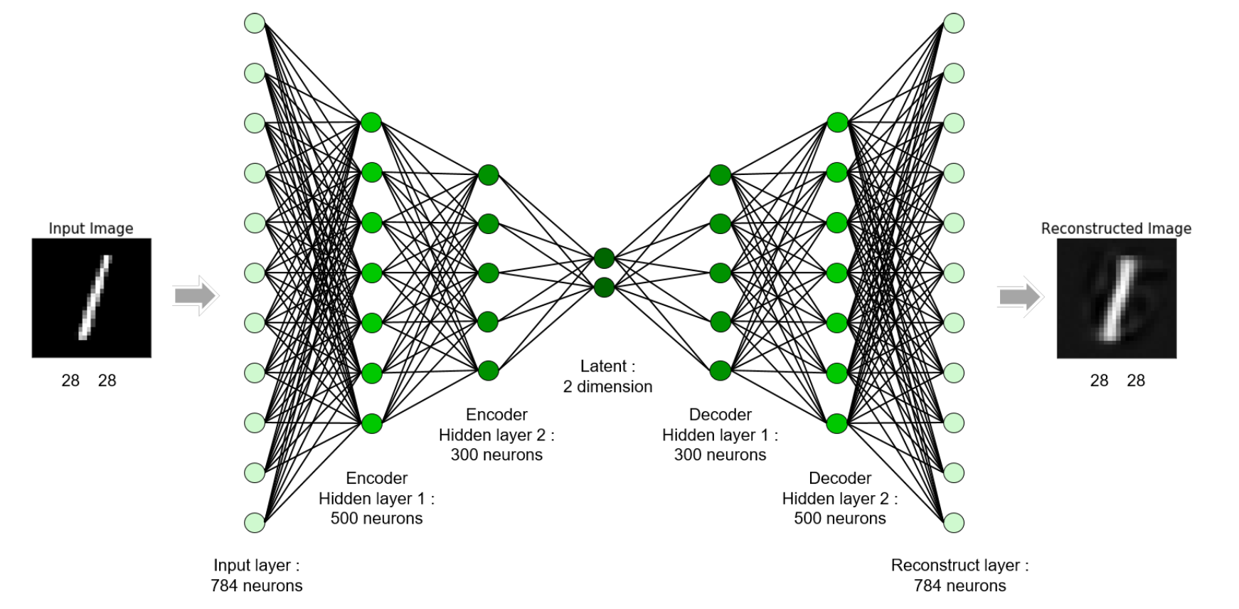 디코더는 2차원으로 압축된 숫자 정보를 토대로 원래 정보(이미지)로 복원한다.