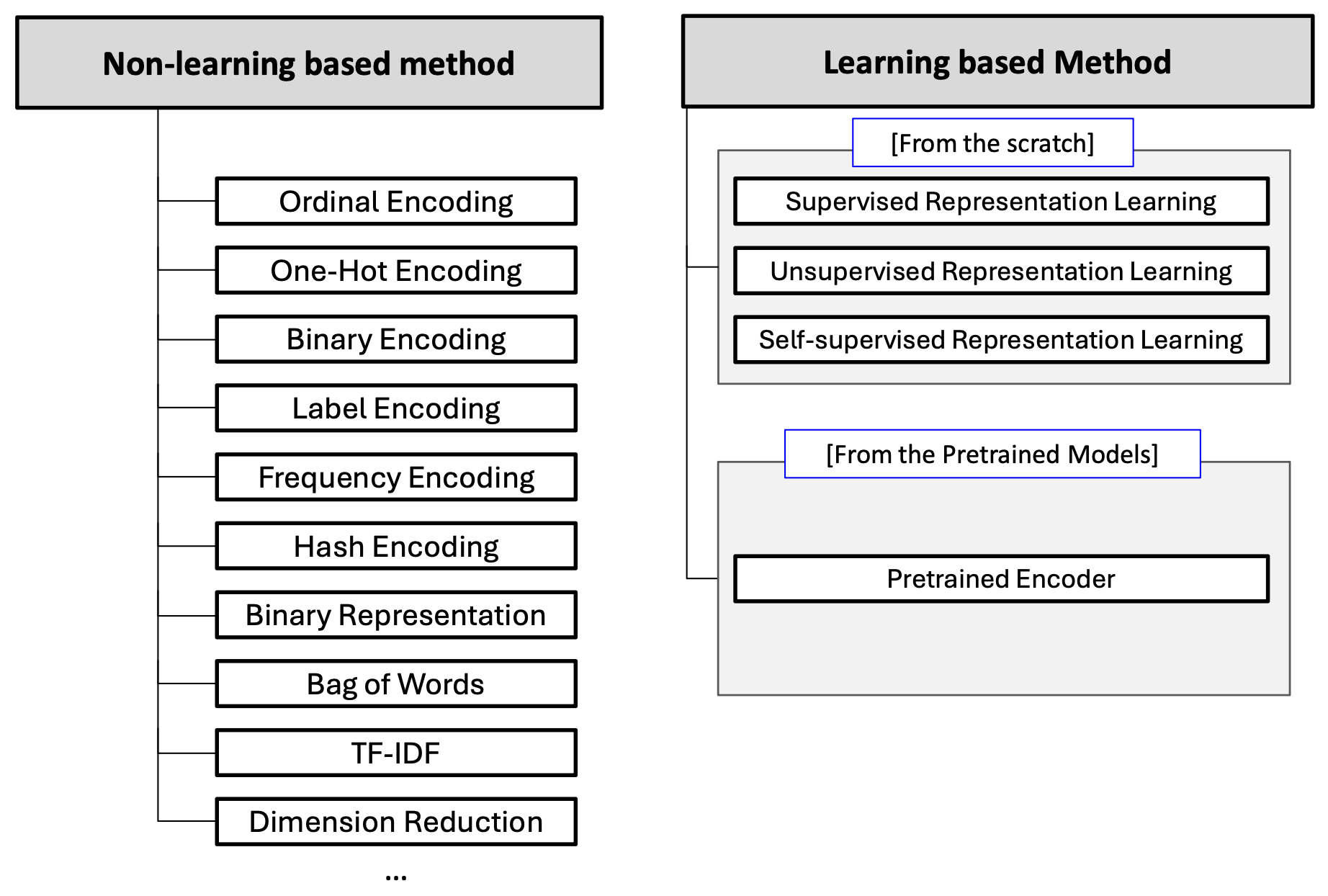 Data to Numbers는 크게 학습 기반 방법과 비학습 기반 방법으로 나눌 수 있다.