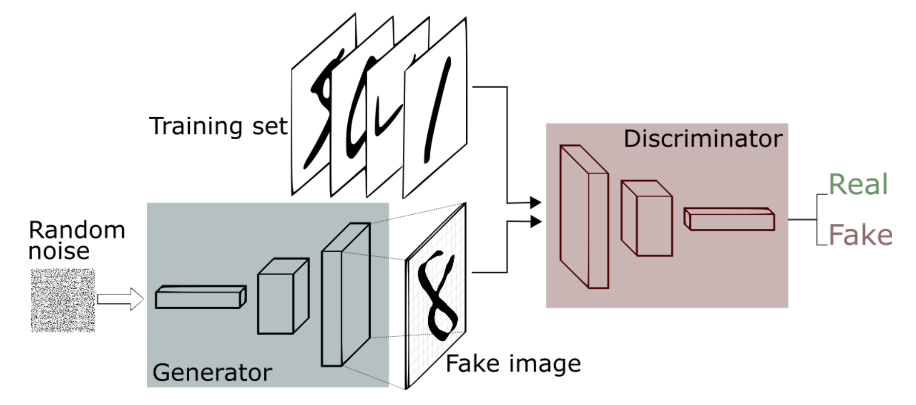 위 과정을 통해 생성자는 실제와 똑같은 데이터를 생성하는 방법을 학습하고, 판별자는 실제 데이터와 생성된 데이터를 구별하는 방법을 학습한다.