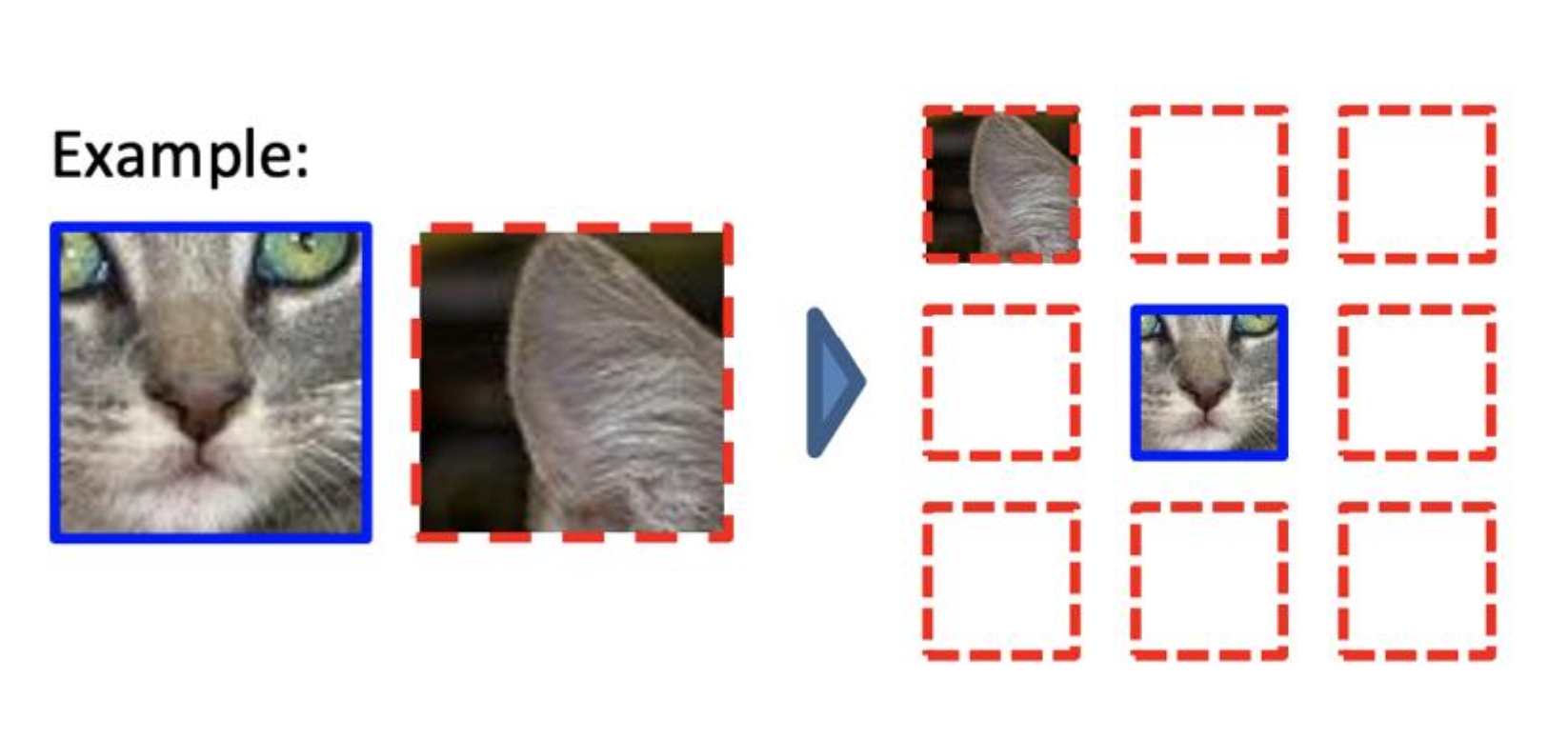 고양이 얼굴을 중심으로 주변 8개 이미지를 임의로 잘라내고, 잘려진 이미지들이 고양이 얼굴을 중심으로 어느 위치에 이있어야 하는지 맞추는 문제로 전환할 수 있다.