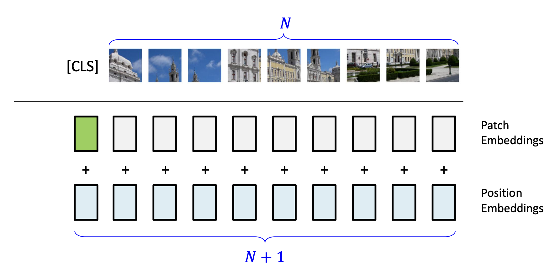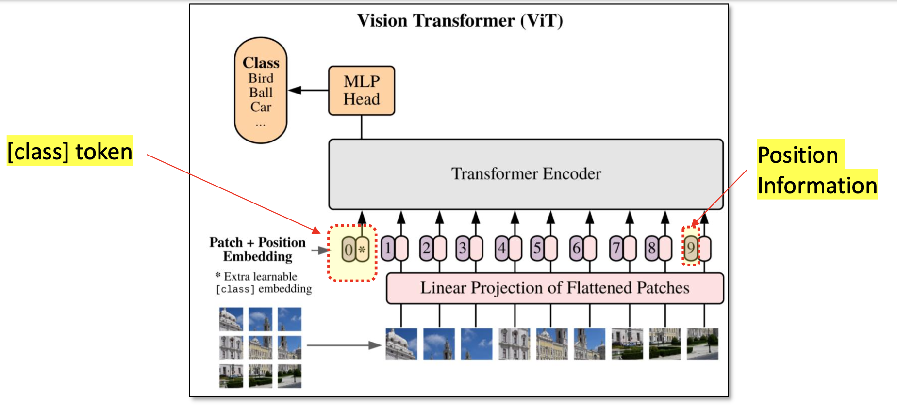 또한 이미지가 어떤 클래스에 속하는지 판단하기 위해 [CLS] Token을 시퀀스의 맨 앞에 추가한다.