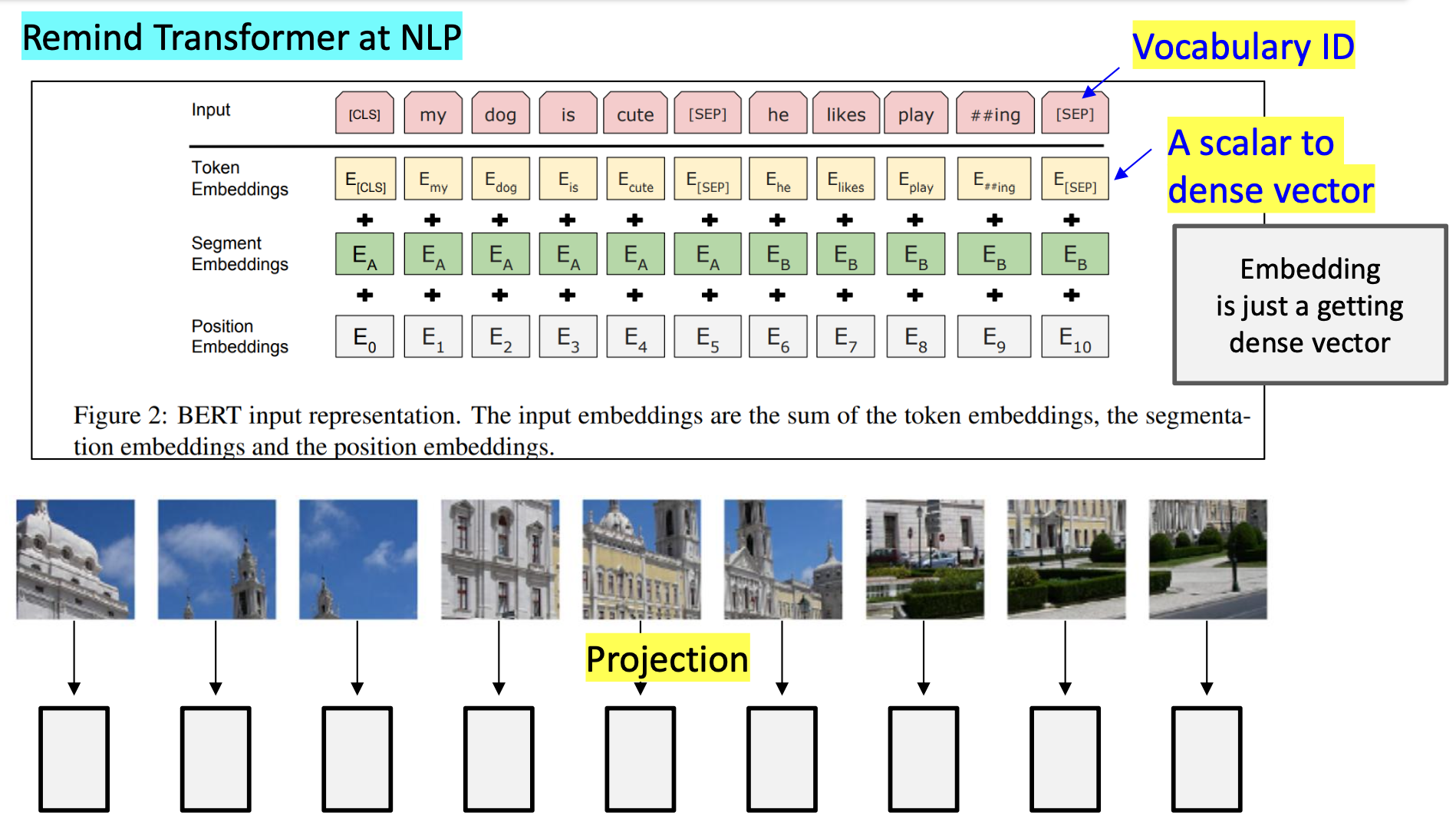 각 패치들은 입력으로 전해지기 전에 임베딩되어 입력을 위한 최종적인 형태로 변환된다.