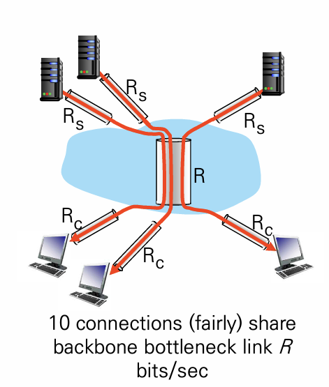 Backbone Internet : 백본 인터넷처럼 양 끝단에 일반 링크가 위치하고 중간에는 매우 빠른 전송 속도를 가진 링크로 구성된 네트워크는 어떨까? 이 경우에도 마찬가지로 양 끝단 링크로 인해 병목 현상이 발생한다.