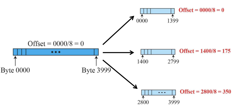 solution : MF 비트가 1이고 Fragment offset이 0이라는 것은 해당 프레임이 첫 번째 프레임이라는 것을 의미한다.예제 4 : 프레임의 Fragment offset 값이 100일 때, 이 프레임의 첫 번째 바이트의 번호를 알 수 있을까?