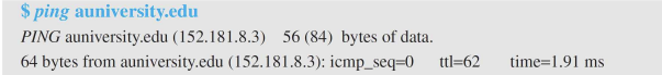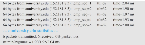 3). 요청 메시지를 받은 대상 호스트(auniversity.edu)는 Echo reply 메시지를 반환한다.