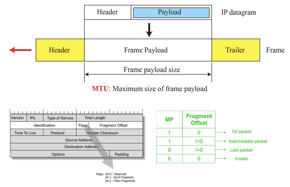 데이터그램이 MTU보다 큰 경우, 전송을 위해선 단편화가 필수적이다.