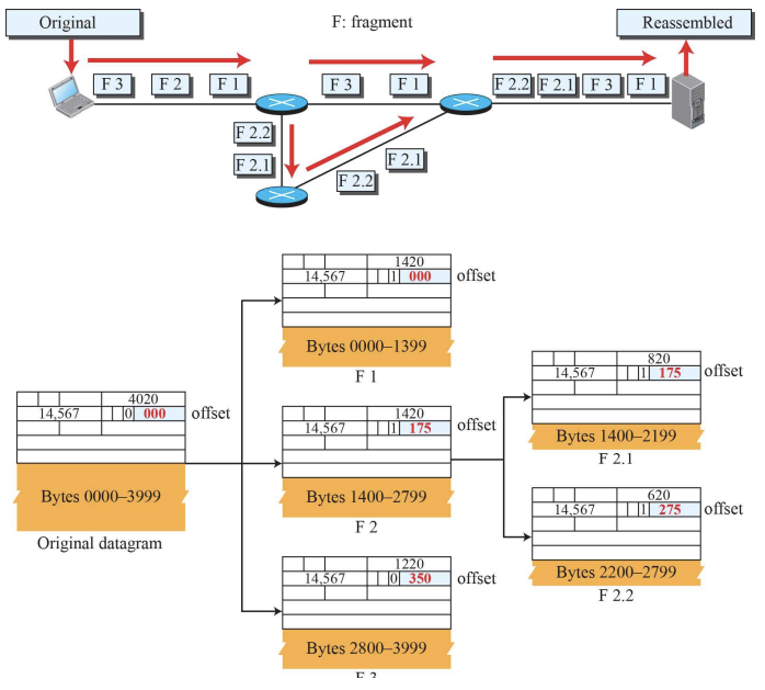 Fragmentation : 데이터그램을 여러 조각의 프래그먼트로 나누는 것으로, 이는 다양한 네트워크 환경에서 맞게 데이터그램의 크기를 조절하여 전송할 수 있도록 하는 유연성을 제공한다.