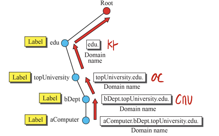 Hierarchical Name Space : 도메인이 여러 서브 도메인으로 구성되어, 상위 도메인과 하위 도메인이 결합하며 고유성이 보장되는 형태이다.