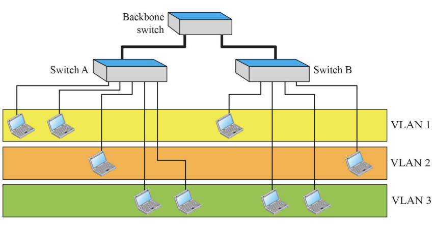 스테이션이 물리적으로 어디에 위치하는지와 관계 없이 VLAN에 속할 수 있다. 즉, 각 스테이션은 VLAN 구성에 의해 논리적으로 그룹화된다.