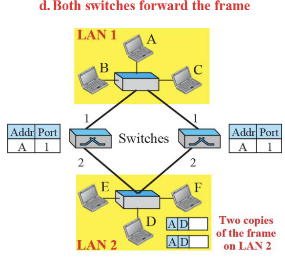 Looping Problem in a Learning Switch : 학습 스위치는 MAC 주소 기반으로 포트를 학습하여 올바른 포트에 각 데이터 프레임을 분배한다. 여러개의 스위치와 네트워크가 연결되는 과정에서 만약 루프 구조를 형성하게 된다면, 루핑 문제가 발생할 수 있다.