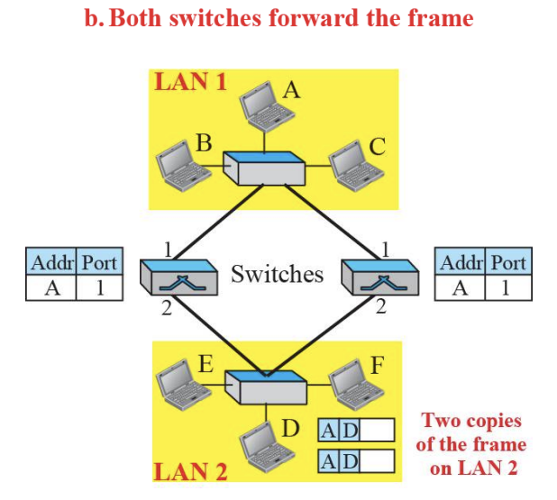 이로 인해 프레임이 무한히 증식되어 결국에는 네트워크 전체가 마비될 수 있다.