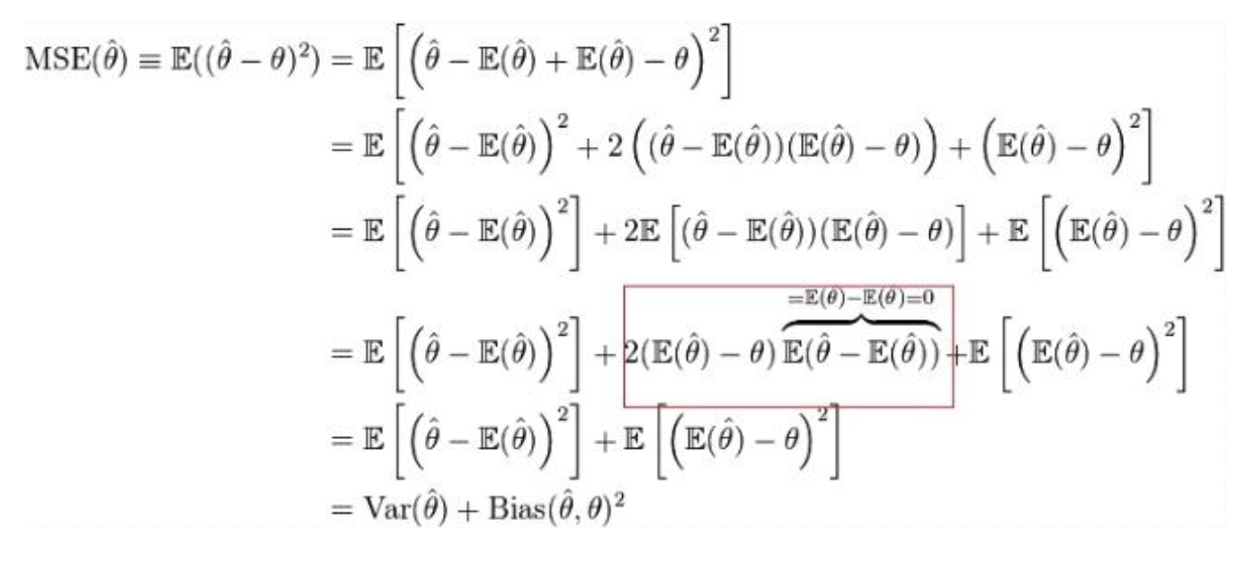 MSE를 최소화하기 위해 편향과 분산 사이의 균형을 찾아내 정의한 MSE 함수는 다음과 같다.