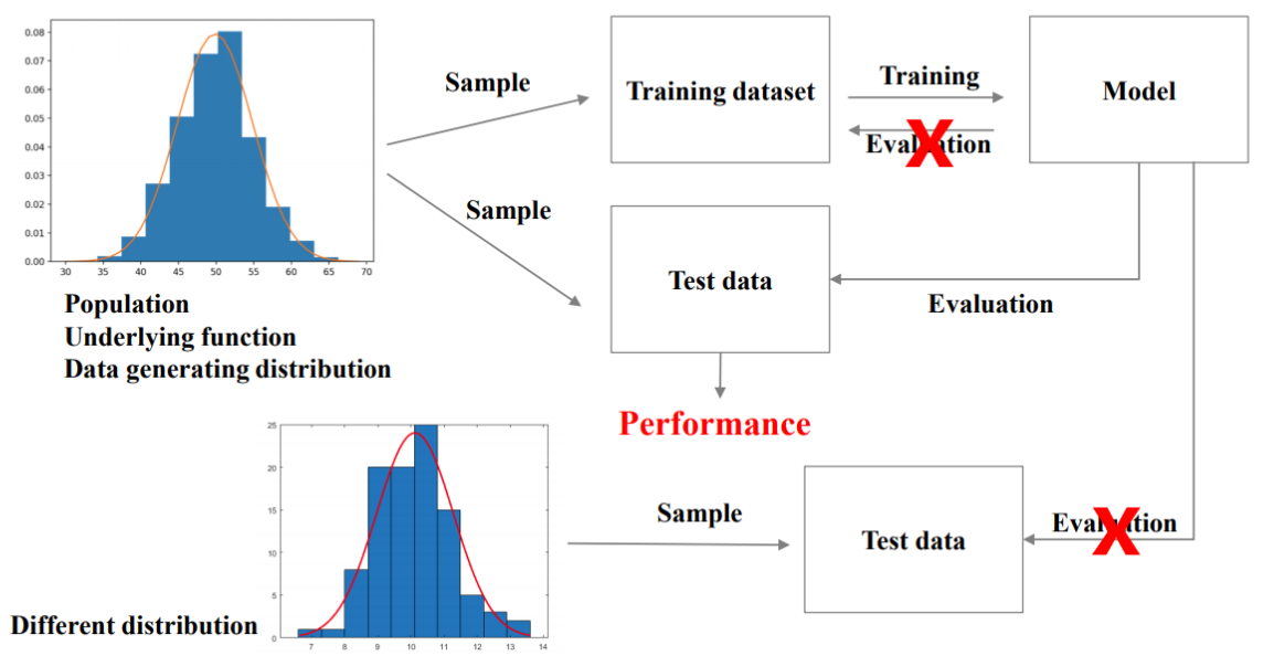 i.i.d assumption이란, 훈련 데이터와 테스트 데이터가 동일한 확률 분포로부터 독립적으로 샘플링된다는 가정이다.