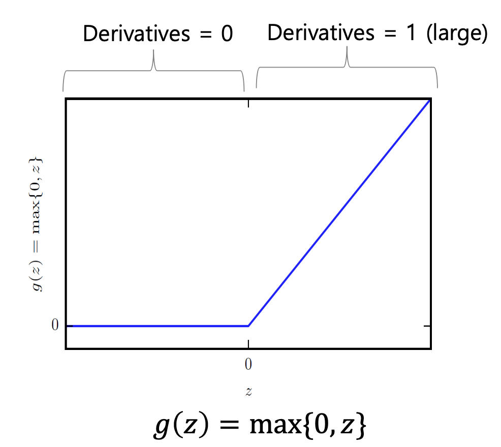 일정값 미만에서 활성화 값이 0이 되어 해당 뉴런이 비활성화되는 경우 존재