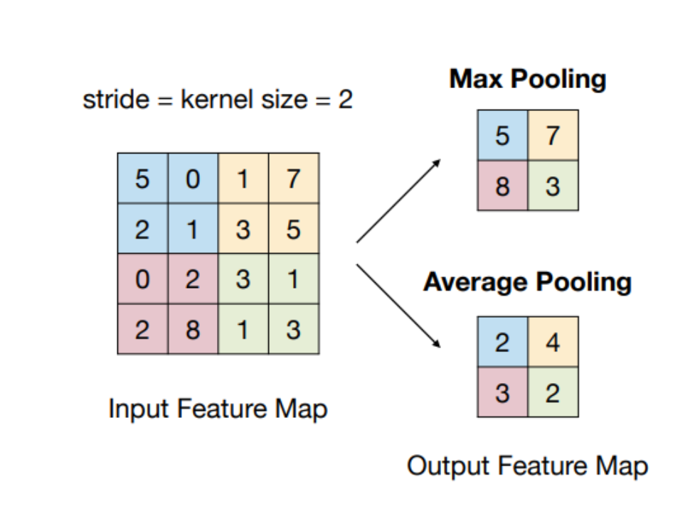 Pooling은 특징 맵에서 특정 위치의 출력값을 주변 출력들의 요약 통계(Summary statistics)로 대체하는 방식이다.