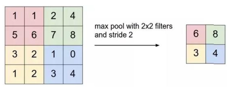 Max pooling : 가장 일반적으로 활용하는 방식; 영역 내 존재하는 값 중 최대값을 대표값으로 사용