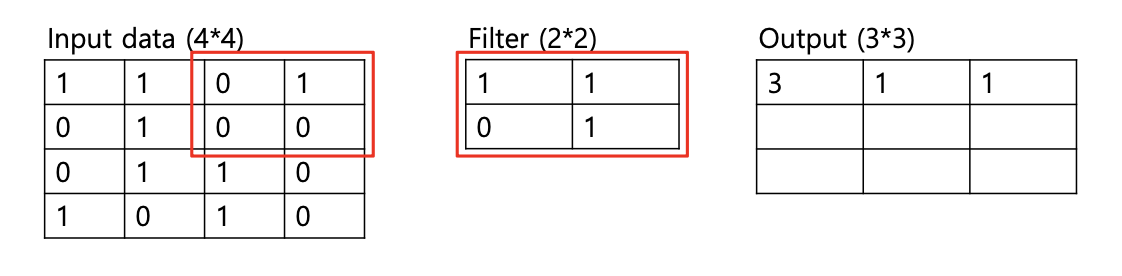 실제로 합성곱 연산이 어떻게 이루어지는지 예시를 살펴보자.