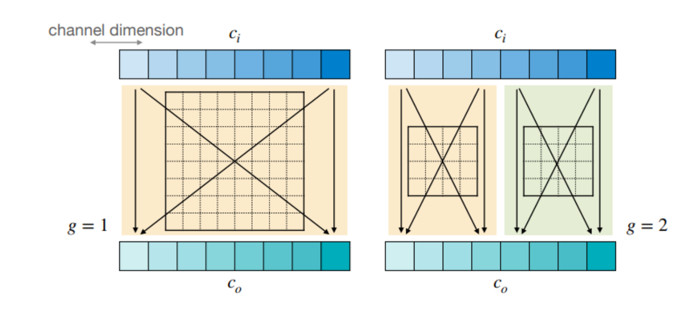 이는 필터를 몇 가지 그룹으로 나누어 각 그룹에 속한 필터는 특정 영역에서만 공유되는 방식이다.