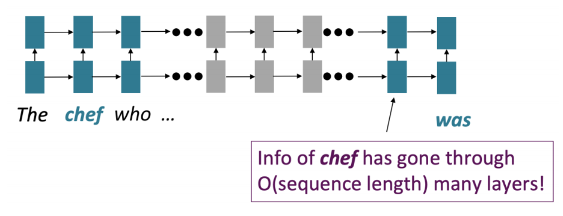 전통적인 Encoder-Decoder RNN의 경우, 입력 시퀀스를 고정된 크기의 벡터로 압축해서 사용한다. 이로 인해 입력과 출력 사이의 거리가 멀어질수록 입력에 포함된 정보가 손실될 수 있다. (장기 의존성 문제)