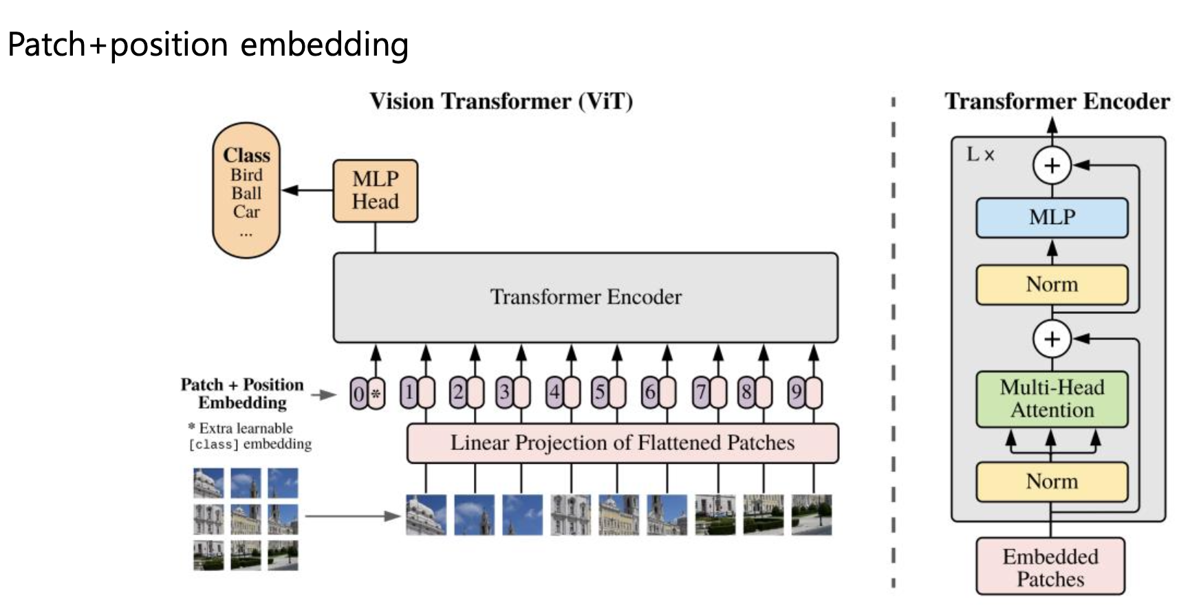 이러한 각 패치 벡터들을 트랜스포머의 인코더로 입력하며, 트랜스포머는 각 패치 간 관계를 학습하여 이미지 전체적인 의미를 파악할 수 있다.