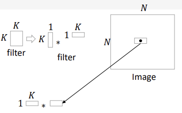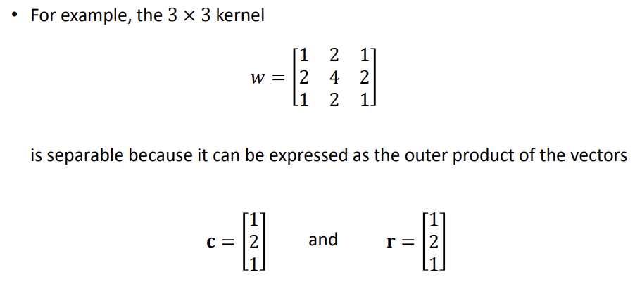 예를 들어, 크기의 Convolution Kernel이 분리가 가능하다면, 그것은 두 벡터의 외적으로 표현될 수 있다.