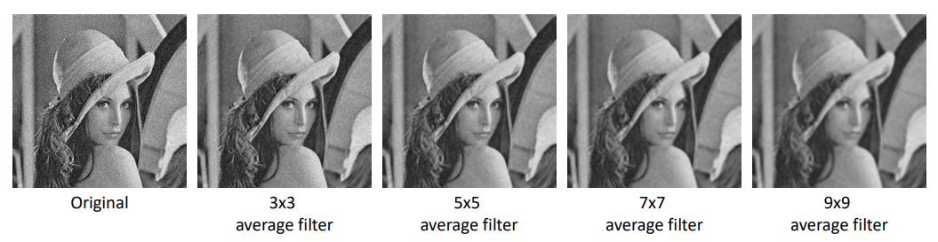Average Filter : 평균 필터는 이미지의 각 픽셀을 그 주변 픽셀 값들의 평균 값으로 대체하는 방식이다.