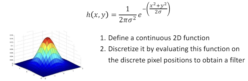 Separability of the Gaussian filter : 2차원 가우시안 함수는 와 에 대한 두 개의 1차원 함수의 곱으로 표현할 수 있다.