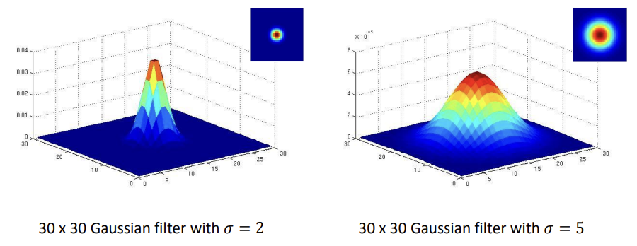 는 가우시안 함수의 표준편차로, 필터가 퍼지는 정도를 결정한다. 즉, 기울기를 나타낸다고 볼 수 있다.
