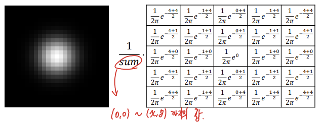 가우시안 필터 요소들의 합은 1이 되어야 한다.