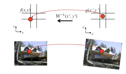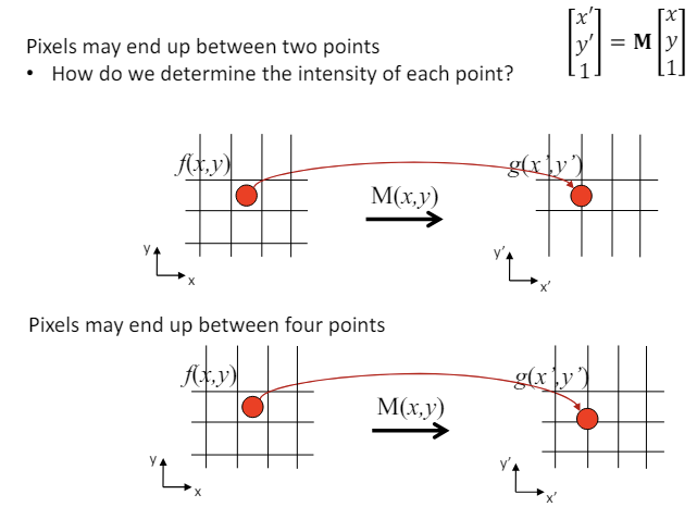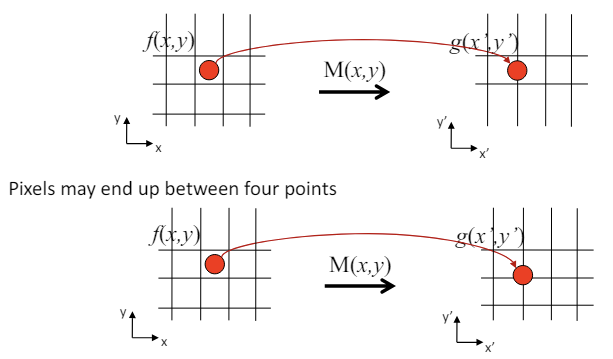 따라서 단순히 행렬과 원본 이미지 의 연산으로 의 좌표에 1:1로 매칭하기에는 무리가 있다.