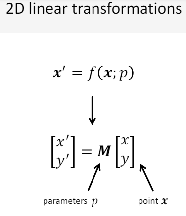 위와 같은 경우, 행렬 M의 곱으로 나타낼 수 없기 때문에 2D Transformation(linear transformation)이 아니다.