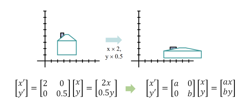 Non-uniform scailng : 높이와 너비를 다른 비율로 변화시키는 것.