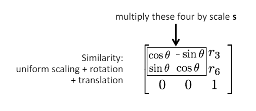 회전을 나타내는 값인 삼각함수의 네 값에 동일하게 Scalar s를 곱한 것으로 Uniform Scaling을 추가할 수 있다.