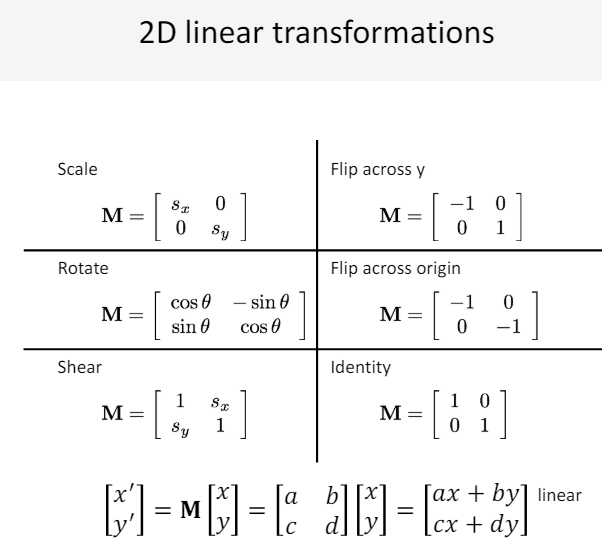 결론적으로, 행렬로 표현할 수 있는 2D Transformation 식은 다음과 같이 행렬 을 통해 표현할 수 있다.