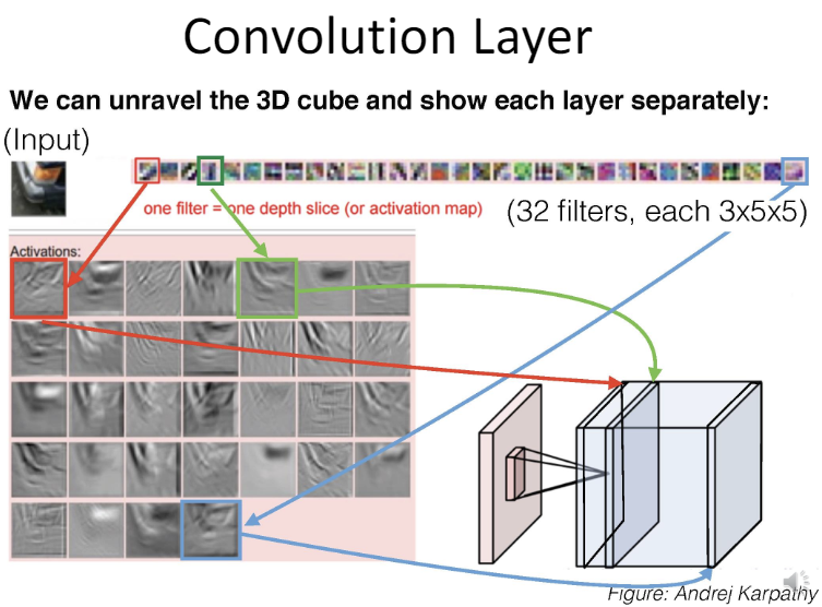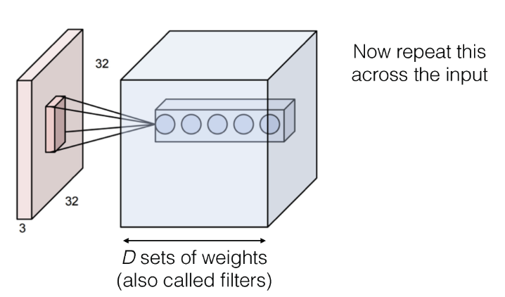 3차원 입력 : 입력으로 주어지는 이미지 데이터는 3차원 배열로 표현된다. 예를 들어, CIFAR-10 이미지 데이터셋은 3(depth) 32(width) 32(height) 형태이다.