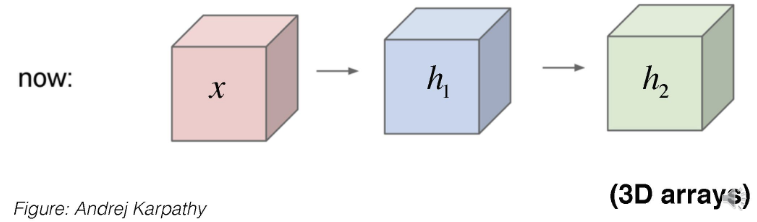 3D 활성화 : 컨볼루션 레이어에서는 입력 데이터의 공간적 구조를 유지하며 데이터 처리가 진행된다.